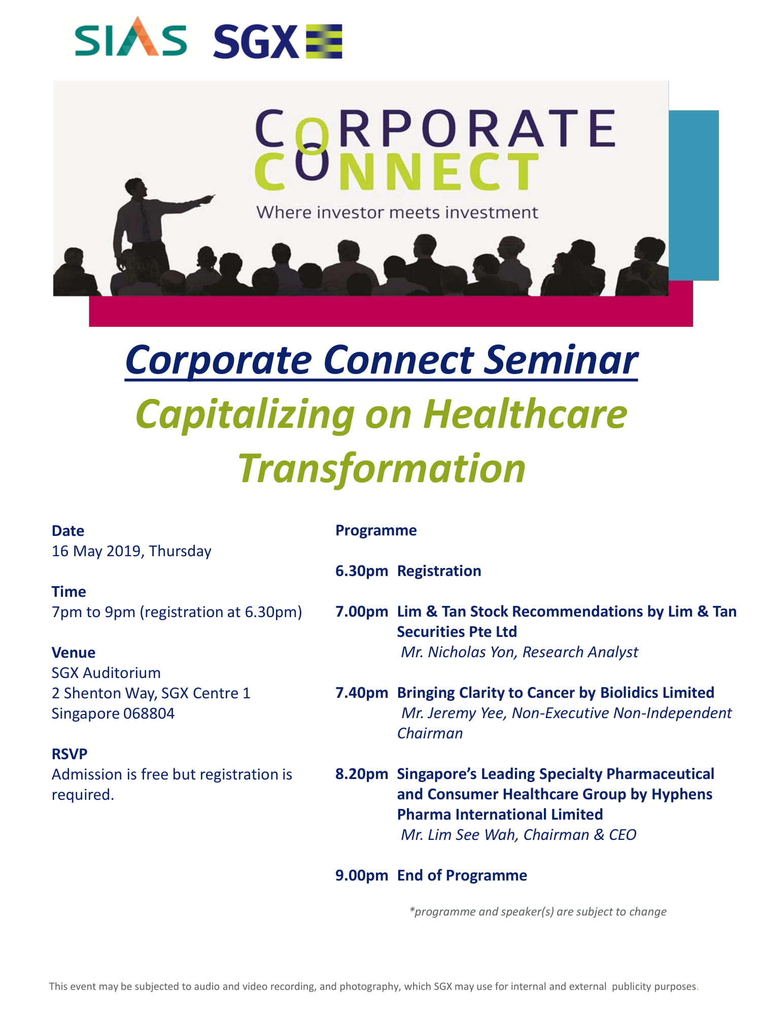 • Corporate Connect Seminar – Capitalizing on Healthcare Transformation
