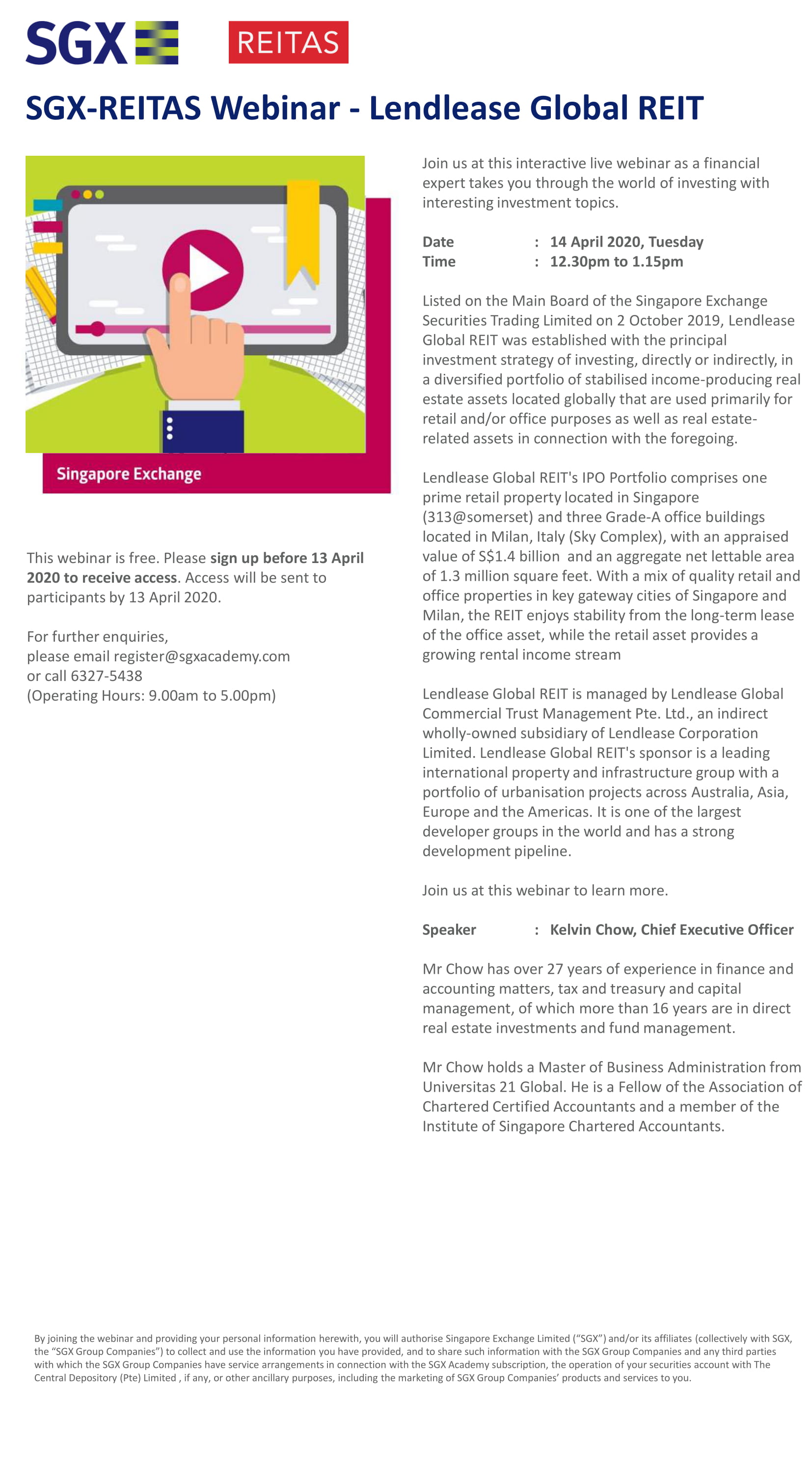 • SGX-REITAS Webinar – Lendlease Global REIT